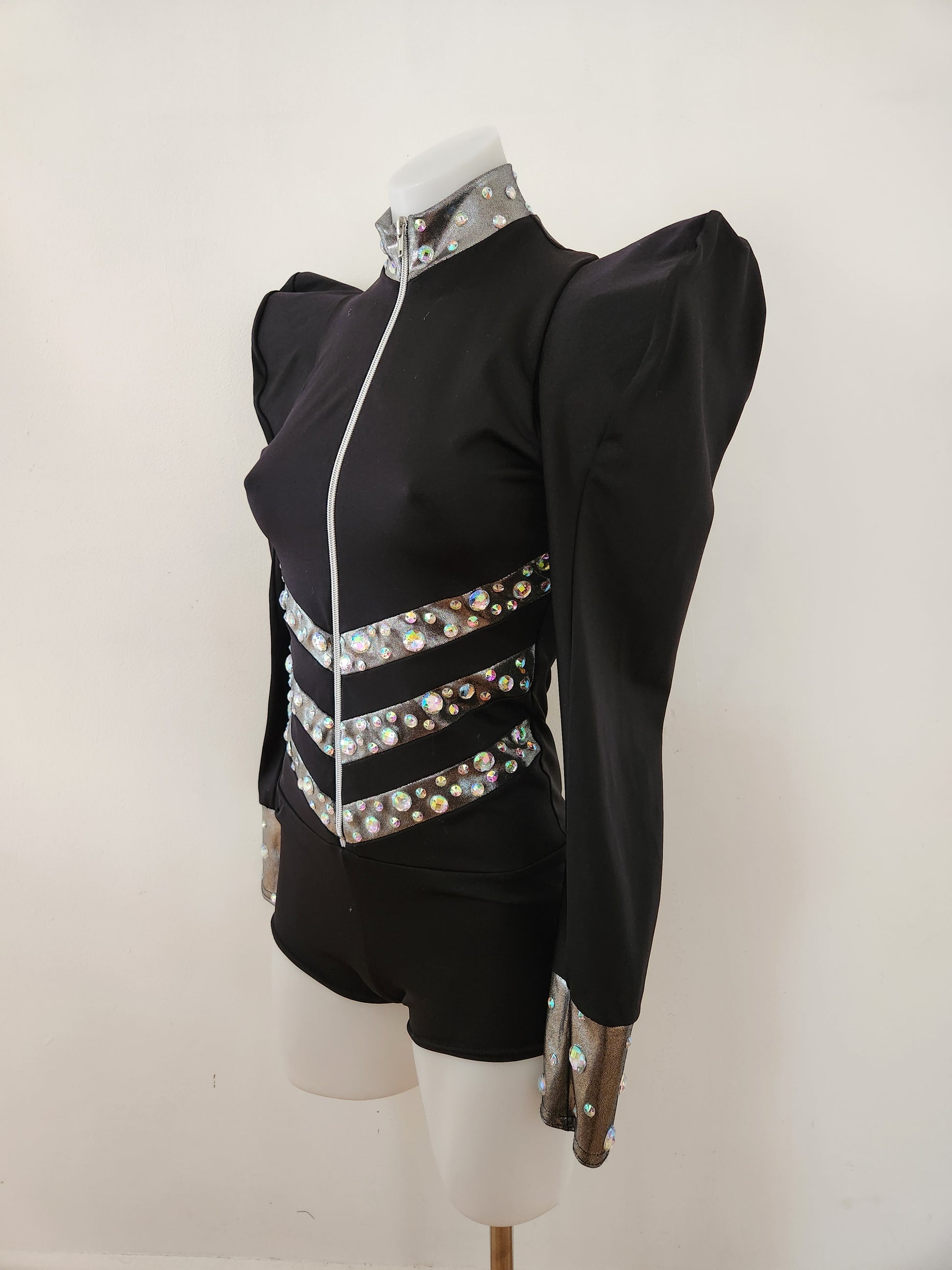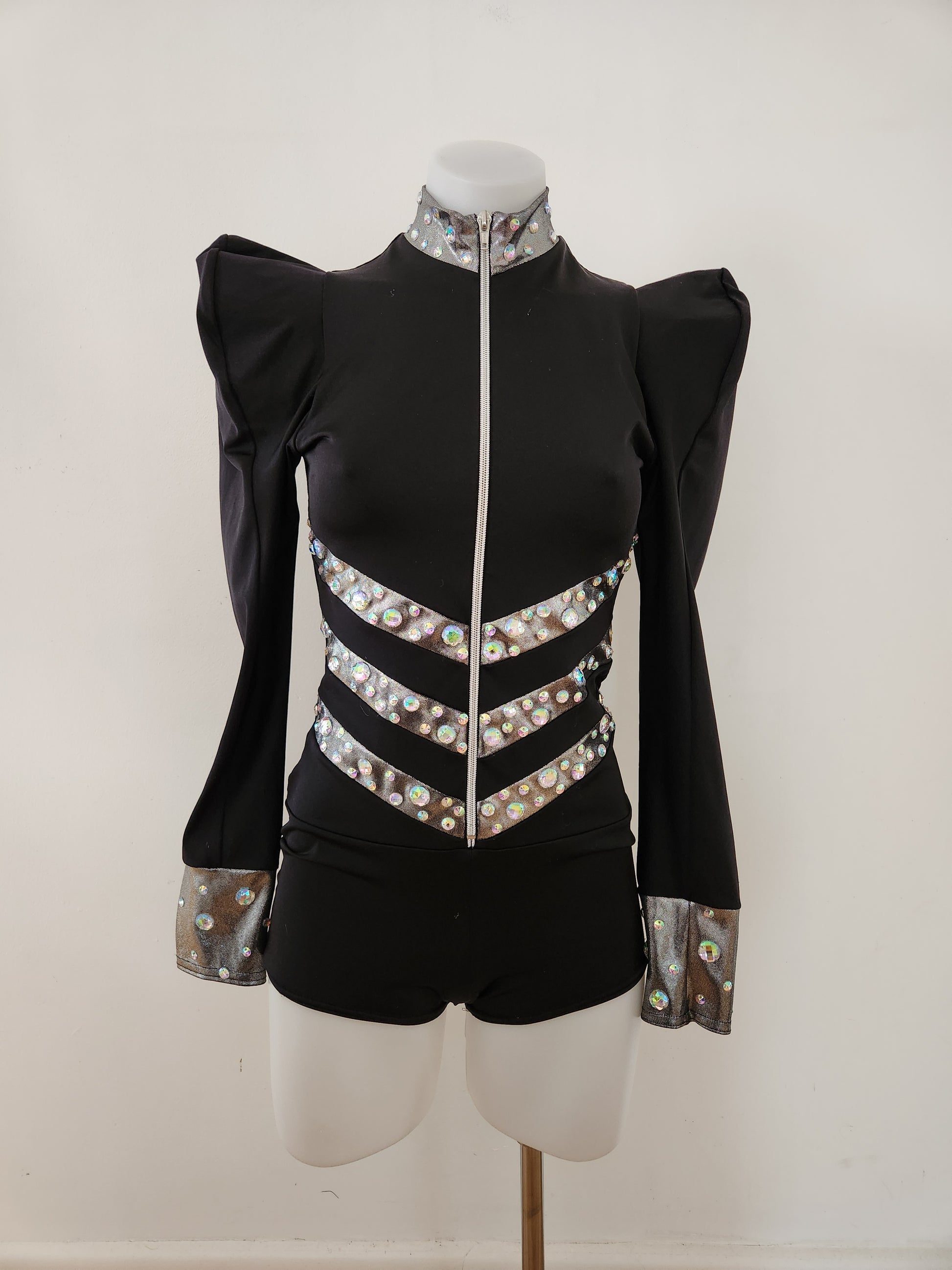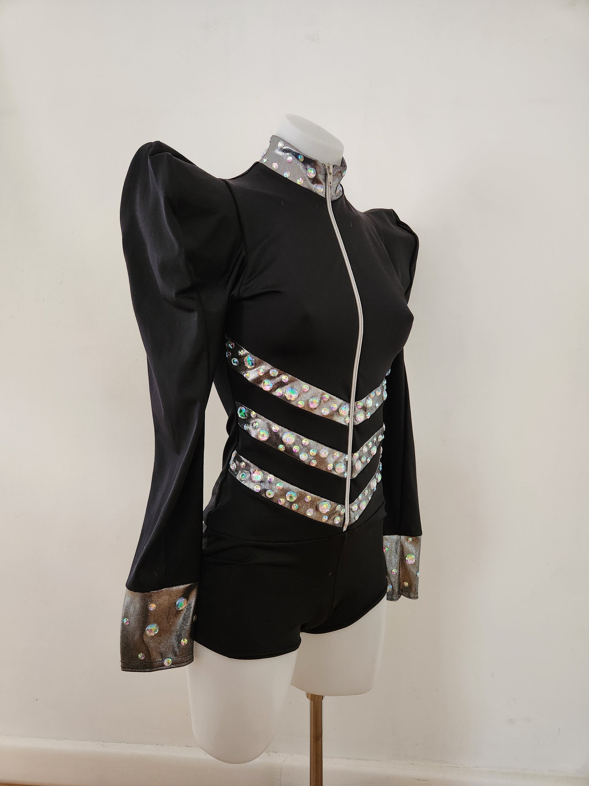 Upcycled Kelle SA base in great condition with added acrylic gems. Could work well for a Lady Gaga routine. The sizing seems more generous than other brands. It fits on my adult 10 board.
