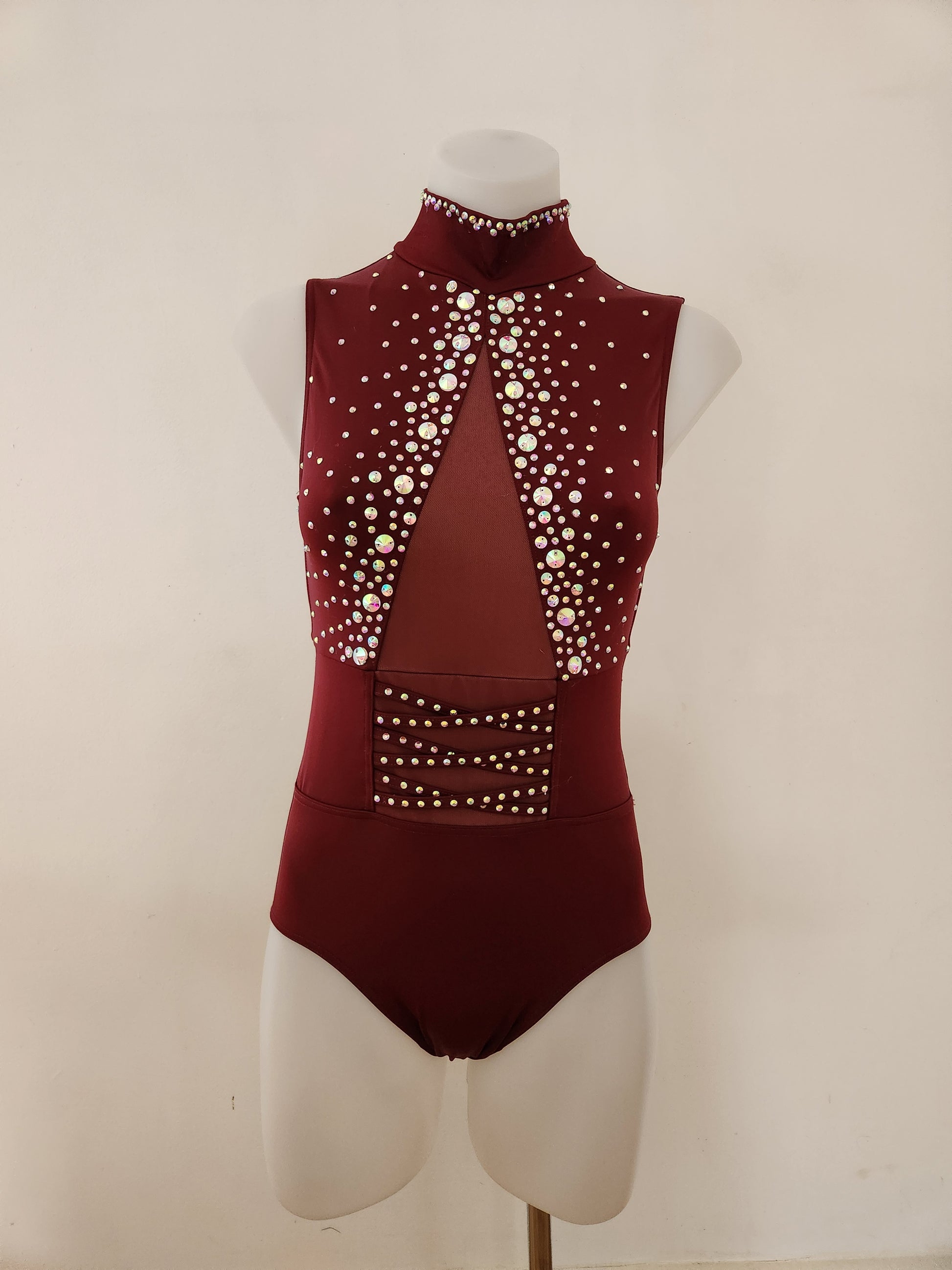 Burgundy Balera SA upcycled base embellished with AB rhinestones. Whilst pre-loved, this base must have barely been worn, as it is in excellent condition.