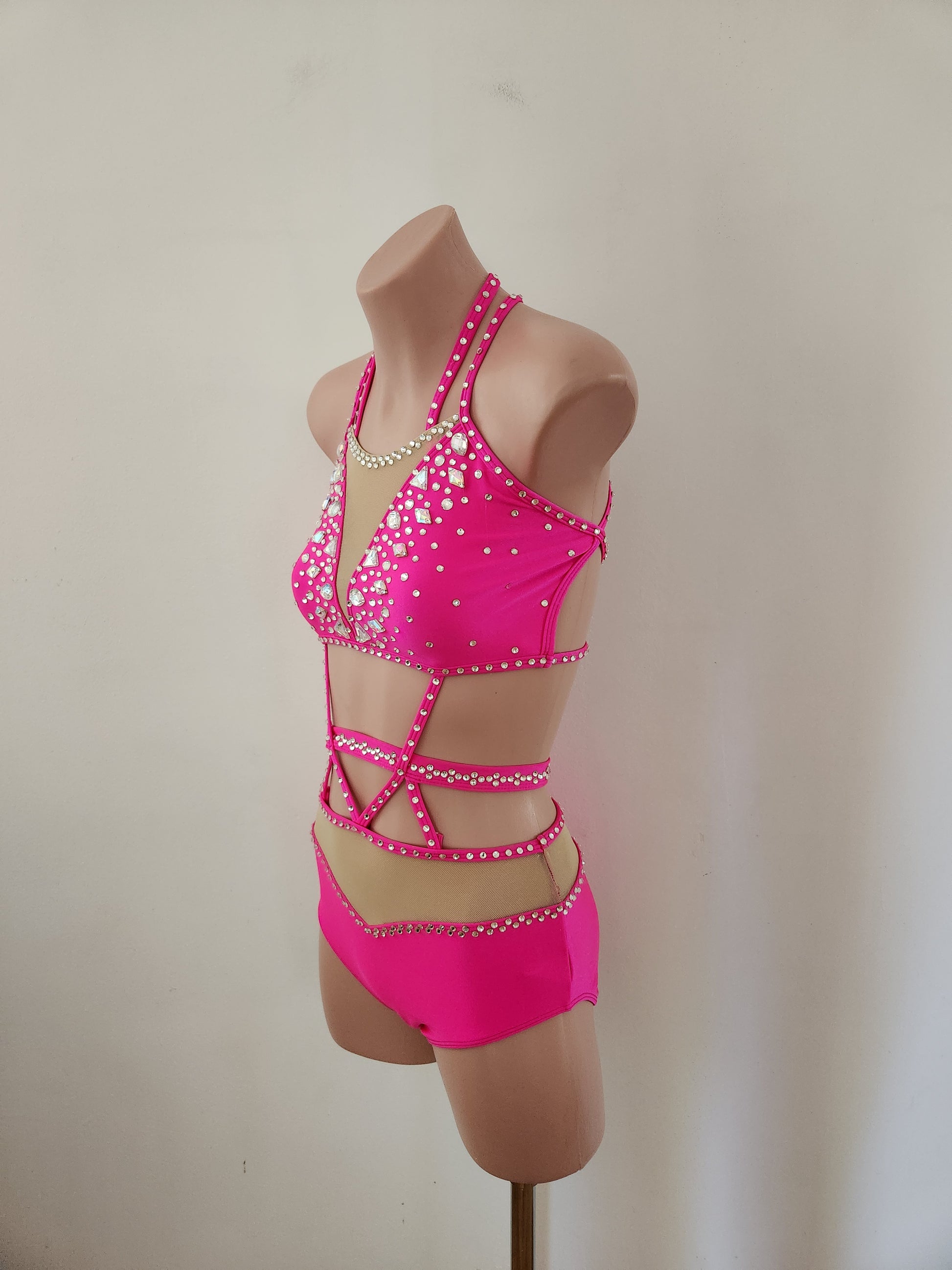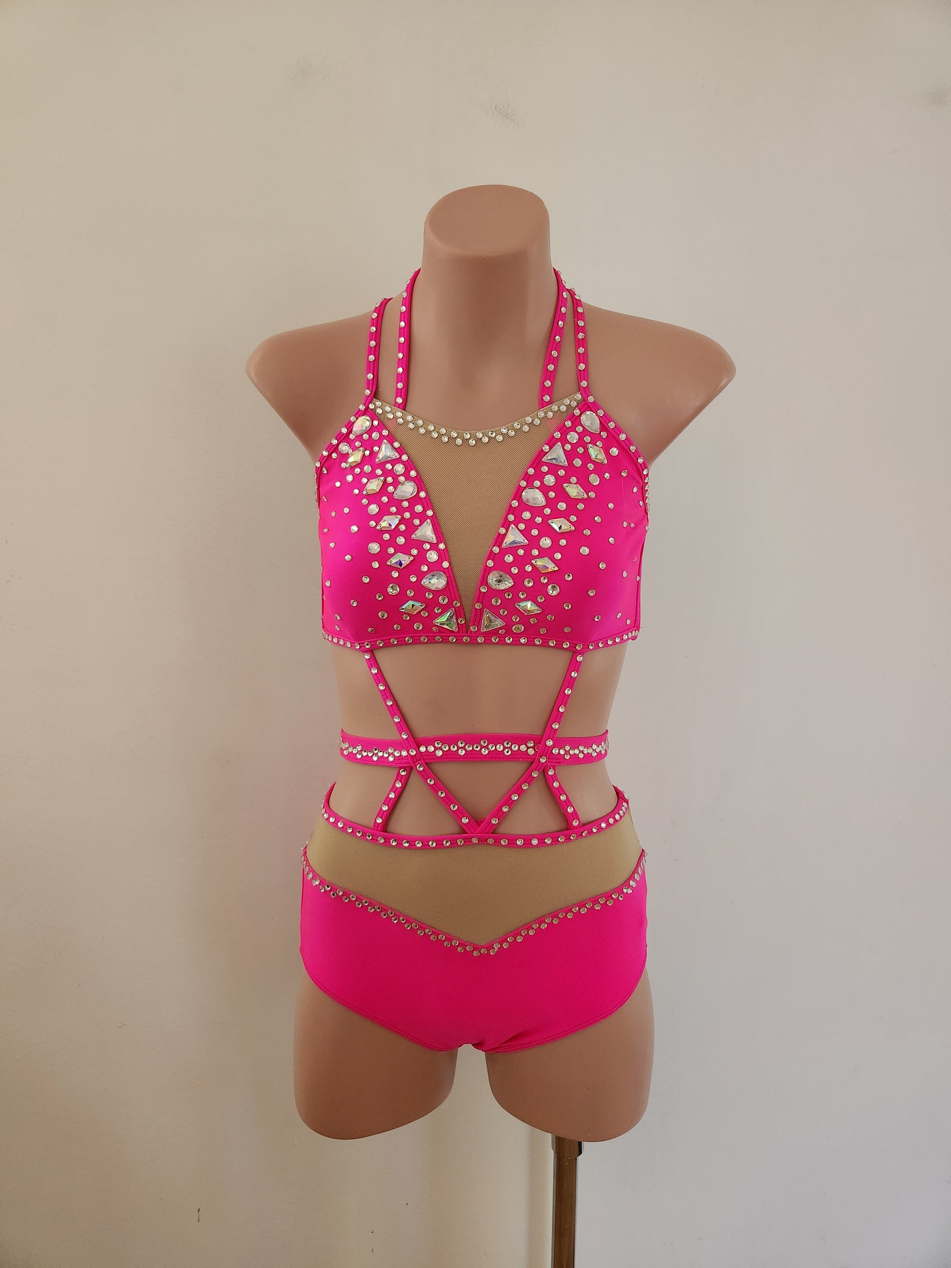 Bright pink base (quality new, fully lined, with tags) blinged with gorgeous crystal rhinestones. These are a slightly smaller fit than other brands, so l have listed the SA as XSA/SA and MA as SA/MA. The fit is probably closer to the lower end of the official measurements below. However the waist could go larger due to the style. NB the A8-10 has a slightly darker (tan) mesh, than the nude mesh of the C12 and A6-8 (in featured pics).