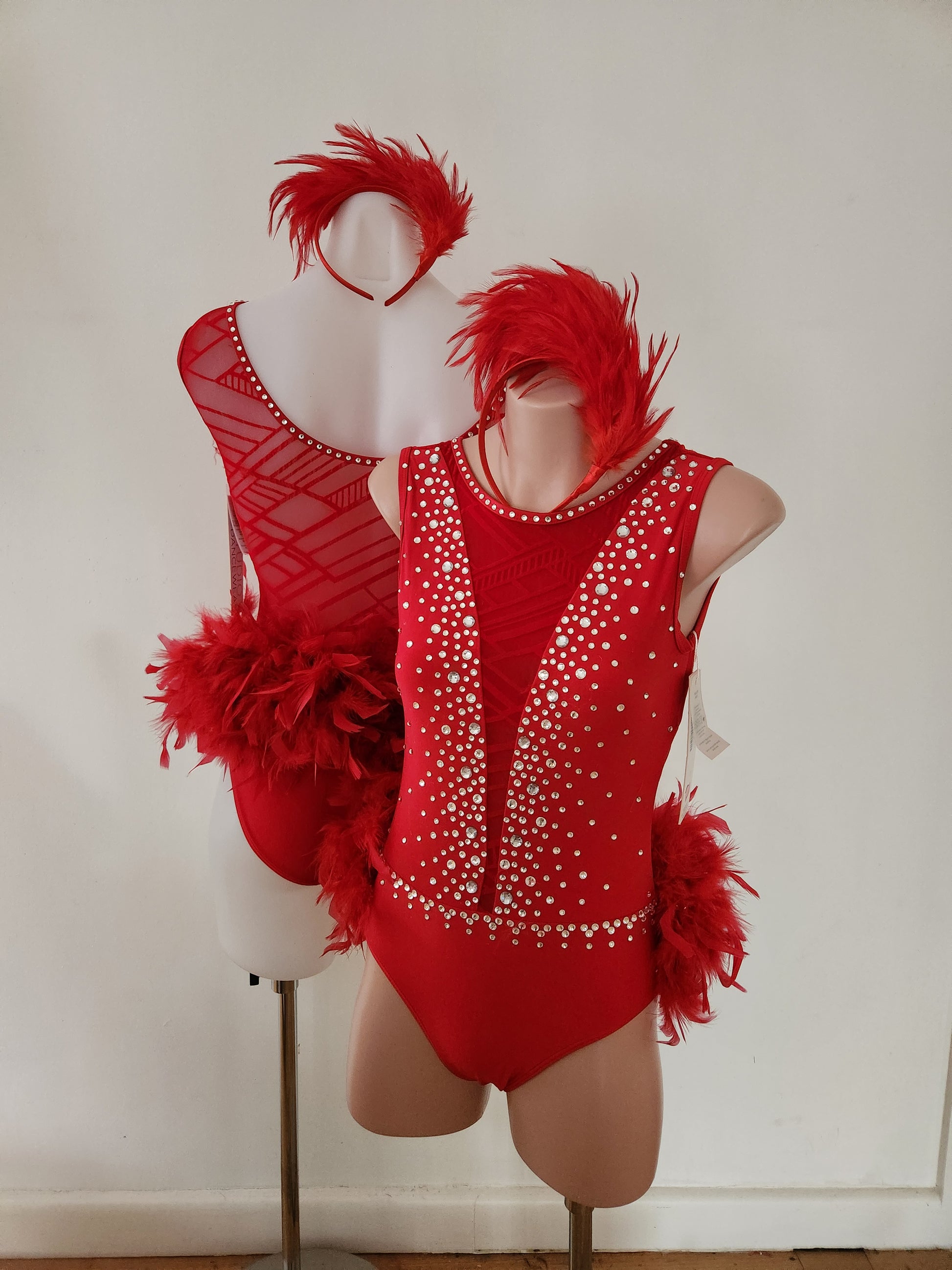 Brand new Studio 7 bases (with tags), blinged with crystal rhinestones and thick feathers. Great for Broadway jazz, musical theatre or tap. Matching feather headband provided.