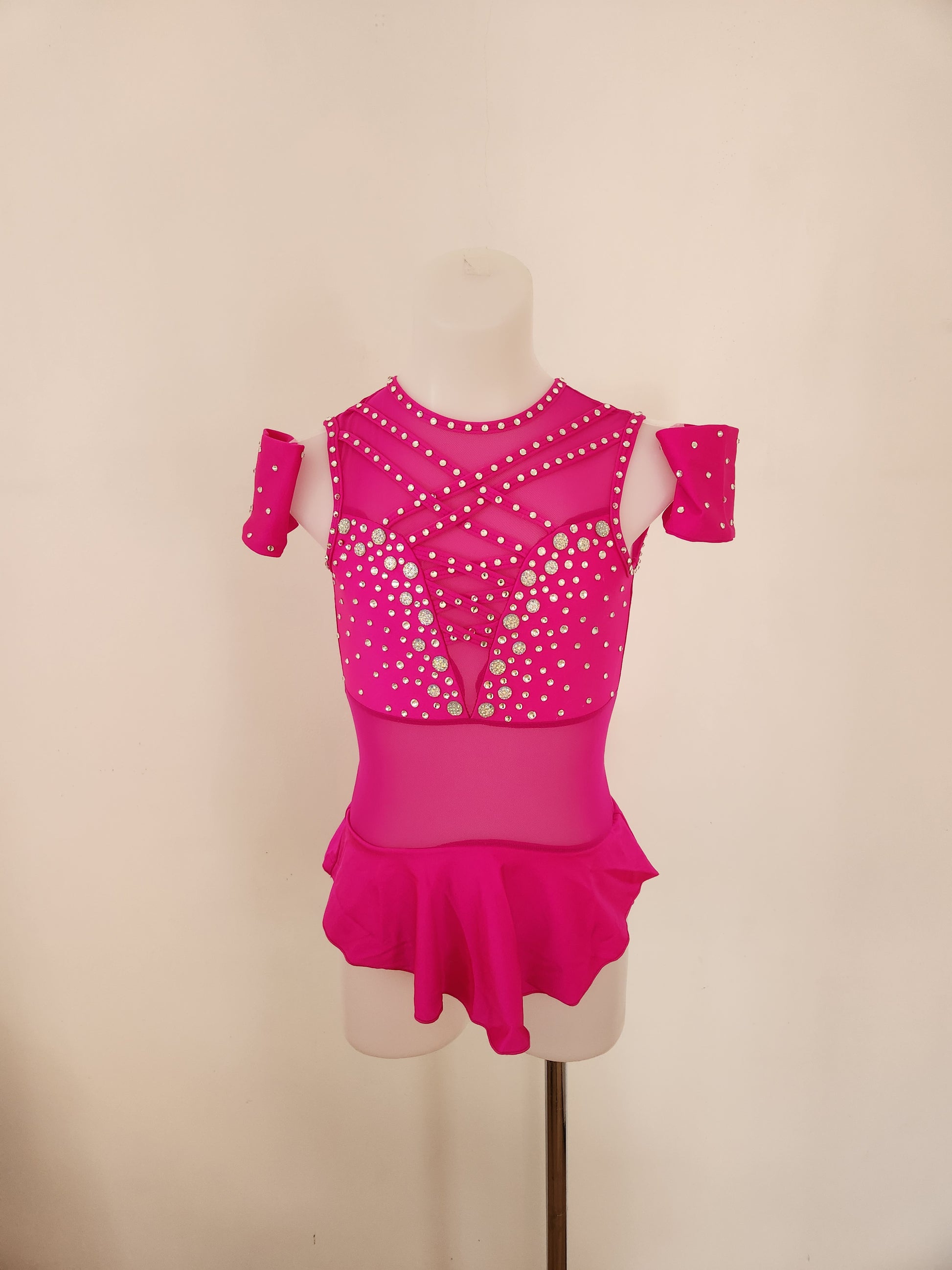 Brand new bases (quality, fully lined) embellished with crystal gems front and back, that will sparkle on stage. Each costume comes with two matching arm cuffs with added gems.