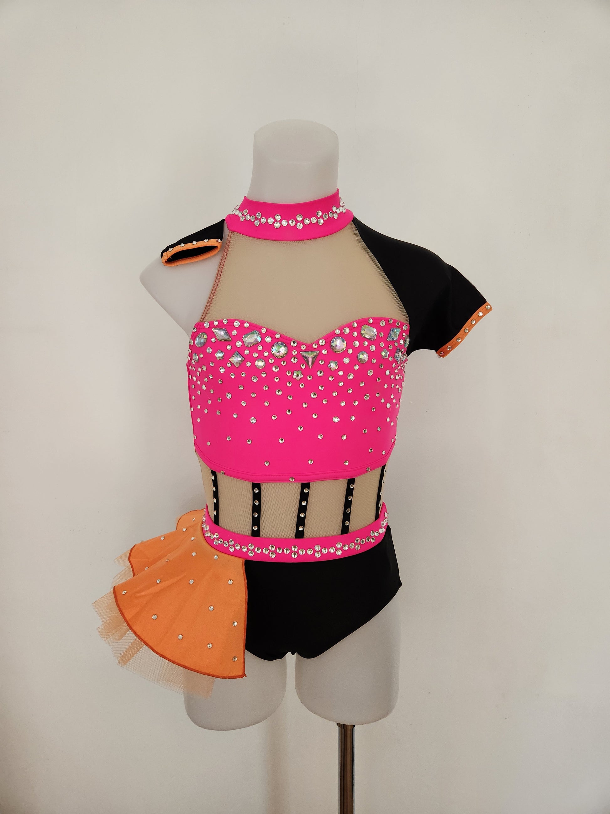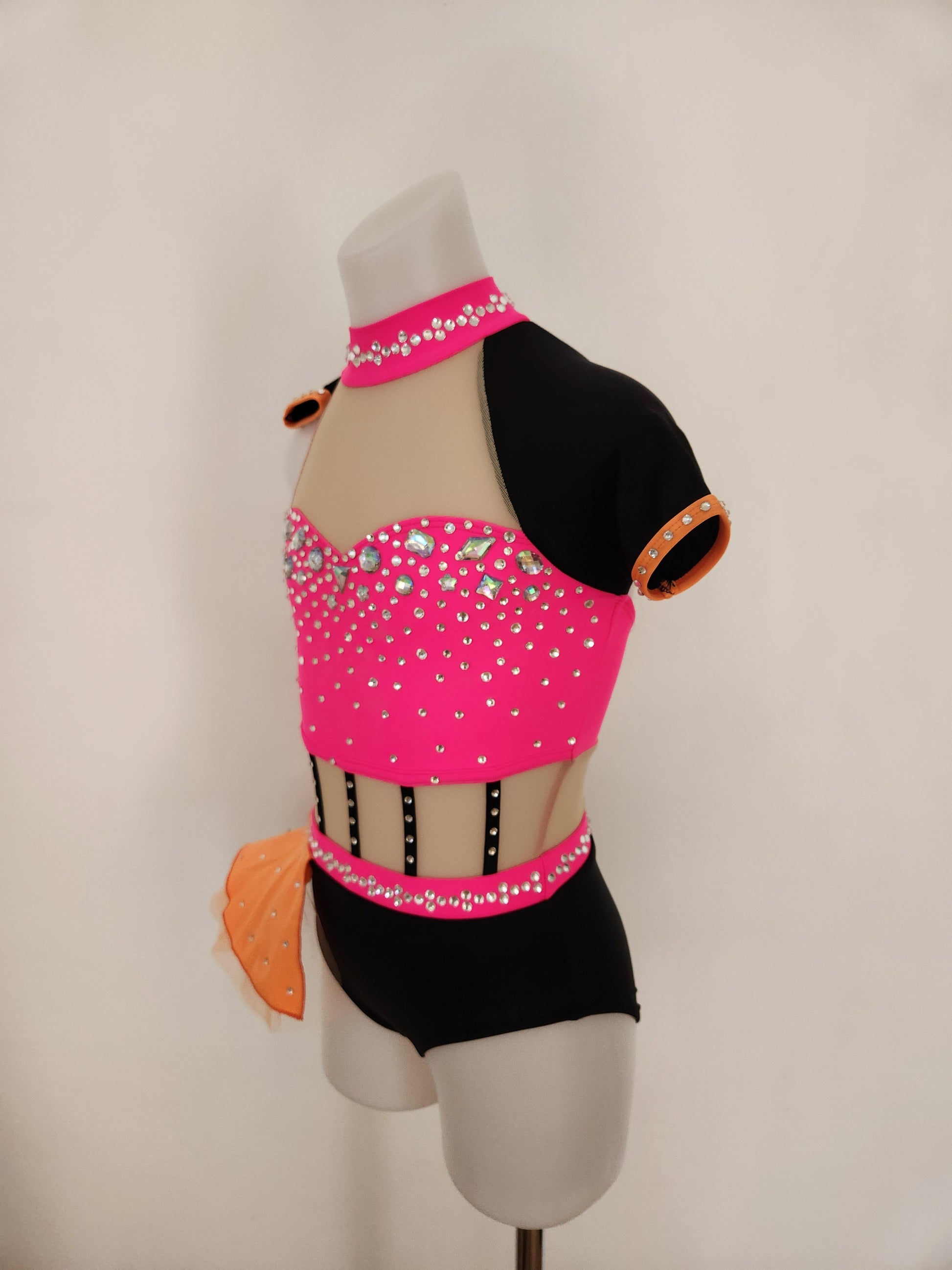 Brand new jazz costume (quality, fully lined with tags) blinged with quality crystal rhinestones. Includes a matching arm/wrist cuff.
