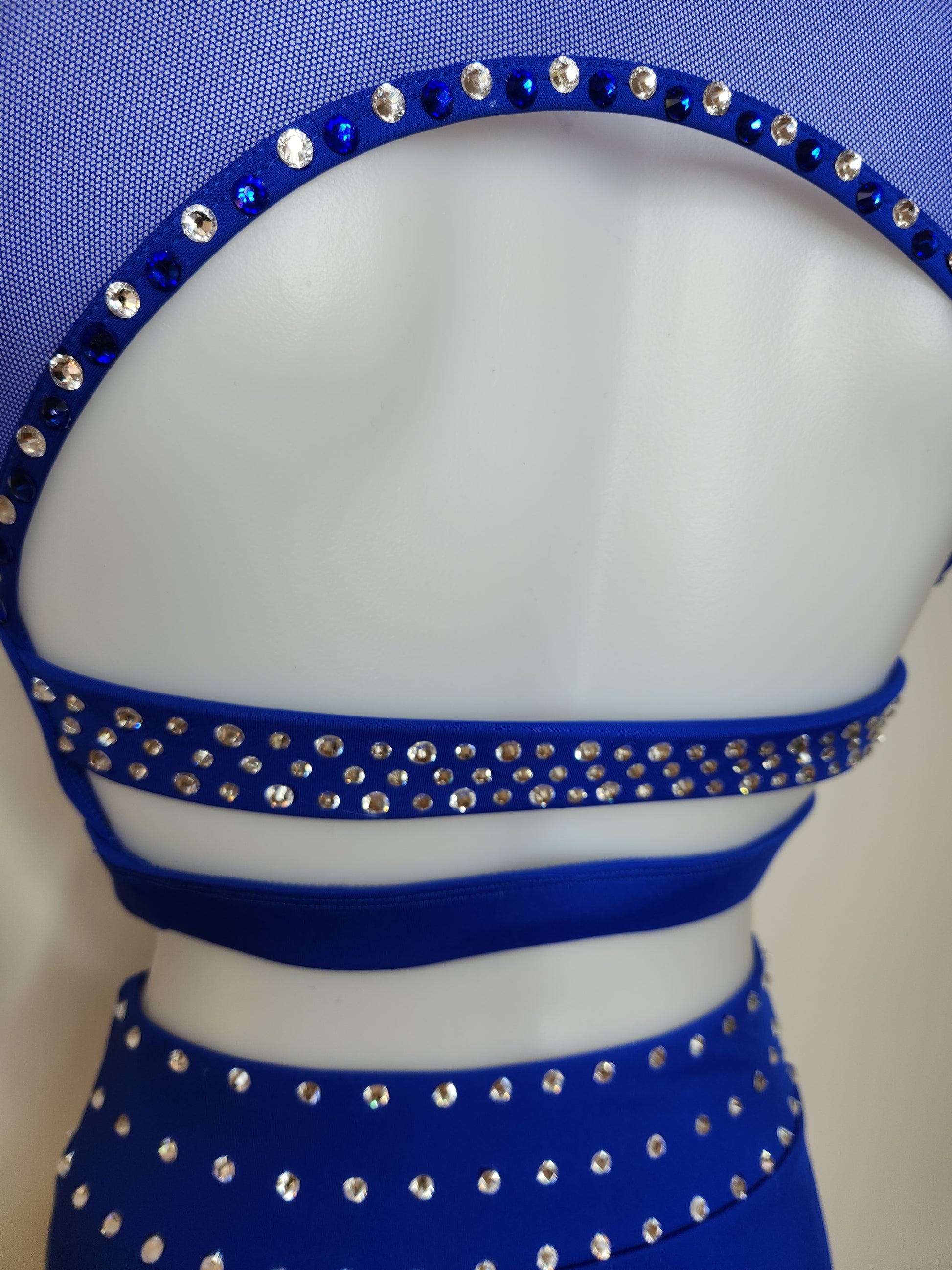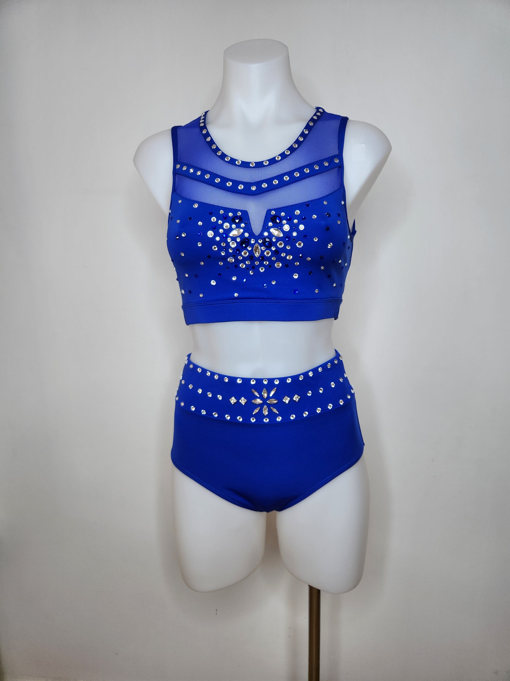 Studio 7 brand new cobalt blue two piece, blinged with blue and crystal rhinestones. Adult small. Tags attached.